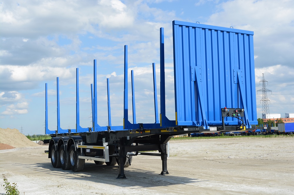 Полуприцеп-сортиментовоз для перевозки длинномерных грузов длиной 2x6м или 3x4м, 3 оси. Разборные коники (сталь DOMEX) в стандартной комплектации.